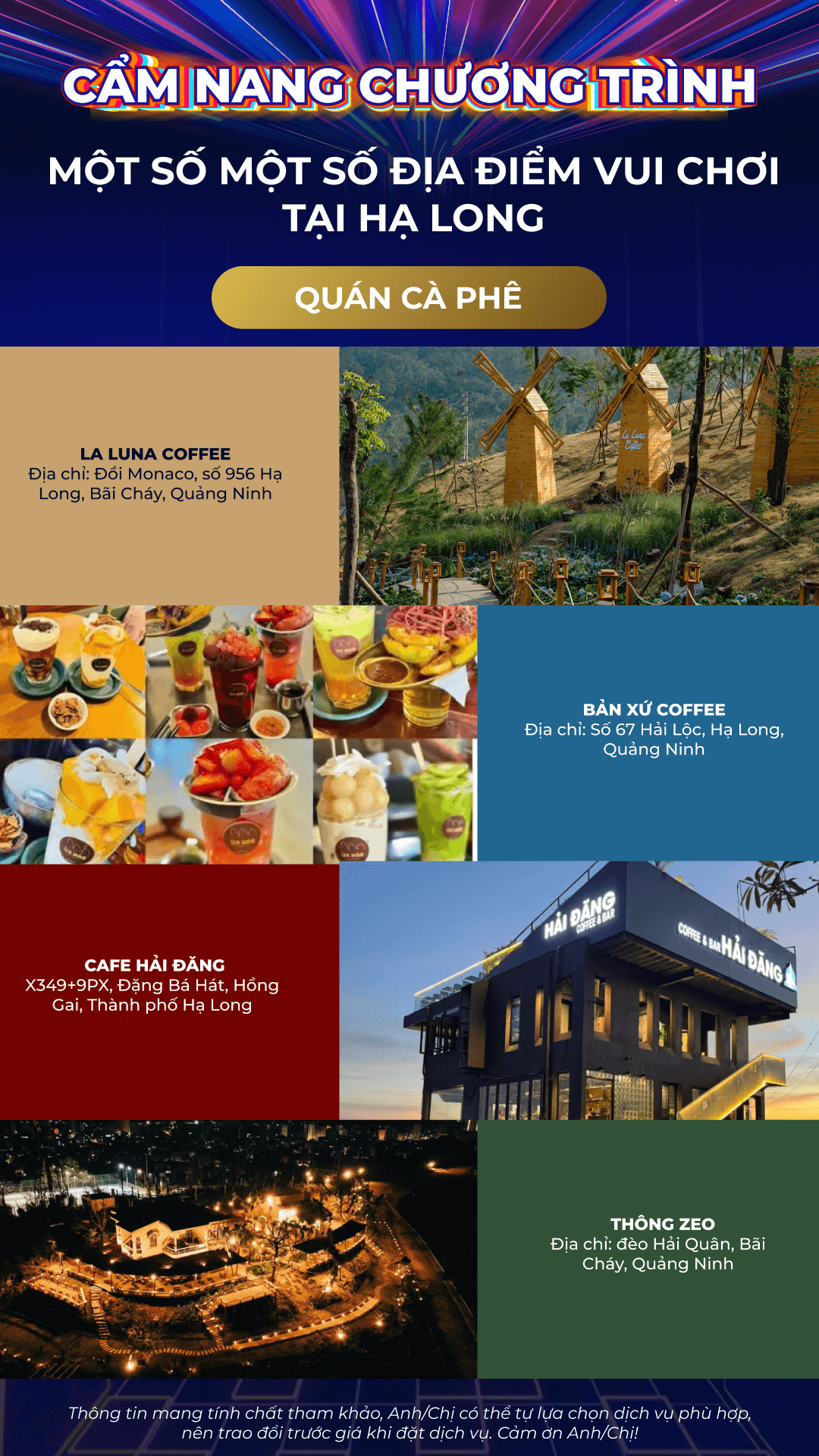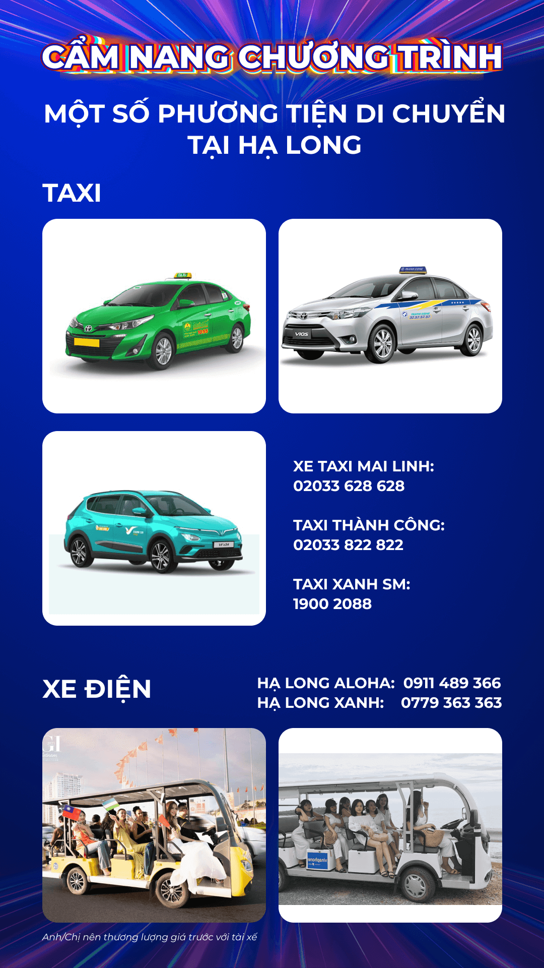 Lưu ý: Thông tin trong Cẩm nang mang tính chất tham khảo. Quý Anh/Chị có thể tự lựa chọn dịch vụ phù hợp với nhu cầu cá nhân, và vui lòng chủ động trao đổi trước về giá cả khi sử dụng các dịch vụ ngoài chương trình.