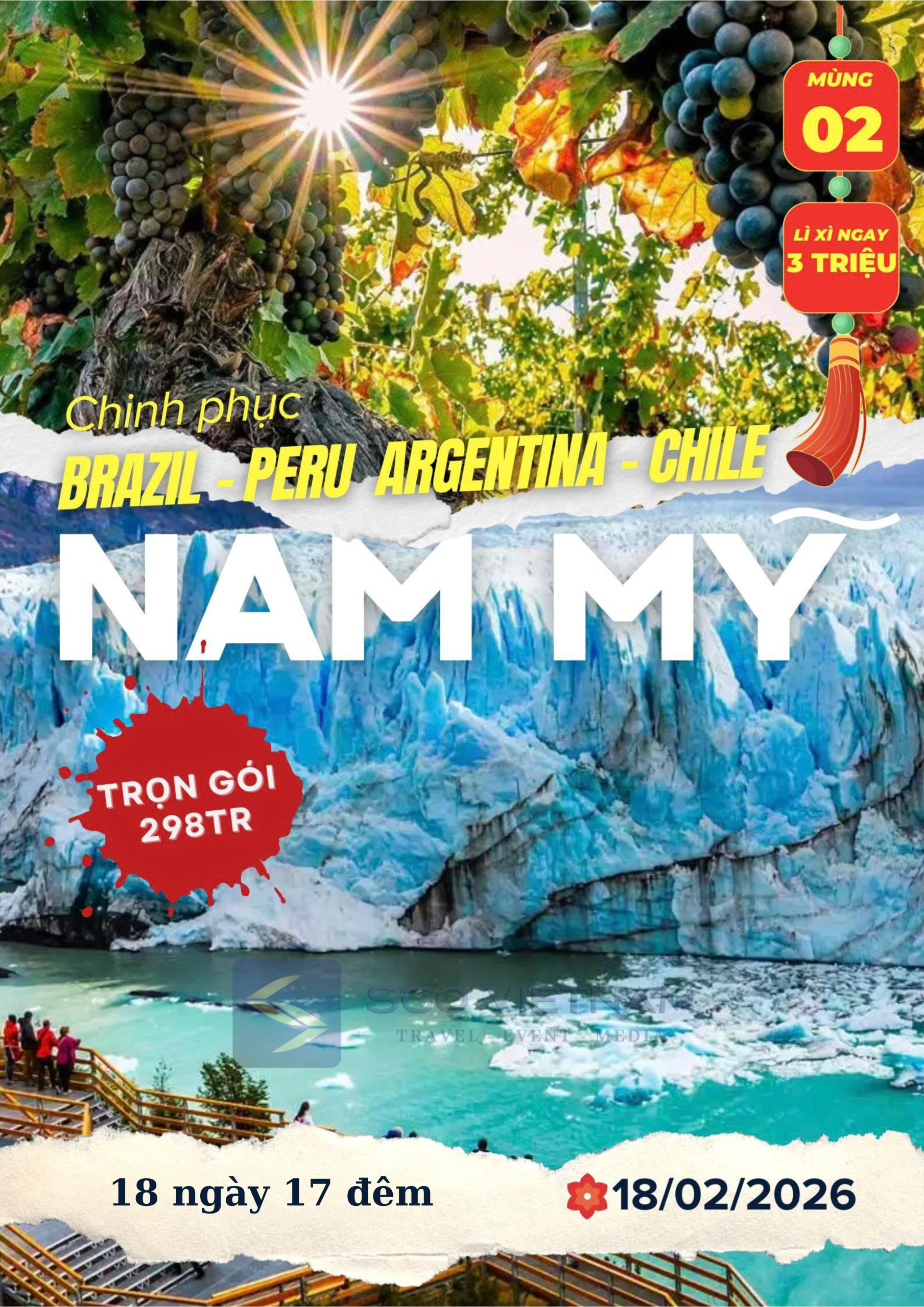 Bạn đã sẵn sàng cho một hành trình vượt qua nửa vòng Trái Đất, nơi mỗi bước chân là một nốt nhạc trong bản giao hưởng của những kỳ quan vĩ đại? Cùng SGO VIỆT NAM khám phá linh hồn của 4 quốc gia huyền thoại Brazil – Peru – Argentina – Chile trong một hải trình 18 ngày được thiết kế để chạm đến mọi giác quan.